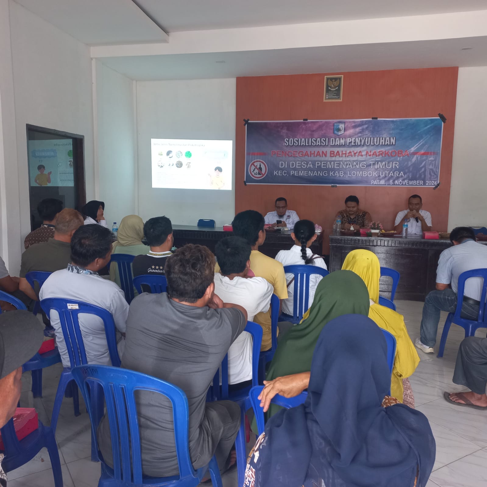 Lombok Utara, NTB – Dalam upaya mendukung program 100 Hari Presiden, yaitu Asta Cita serta memberantas dan meminimalisir peredaran Narkoba, Satuan Reserse Narkoba Polres Lombok Utara melaksanakan kegiatan sosialisasi Kampung Bebas Narkoba bertempat di Kantor Desa Pemenang Timur Desa Pemenang Timur Kecamatan Pemenang KLU. Selasa, 5/11/2024.
