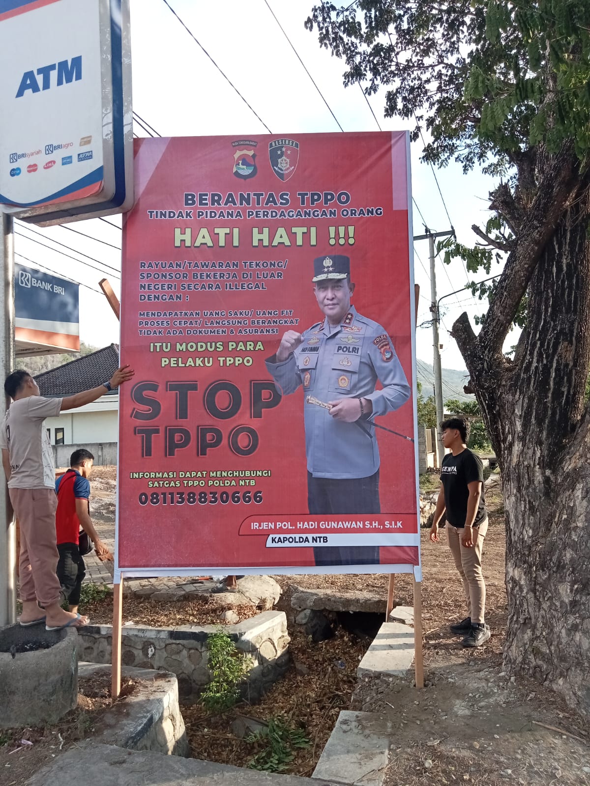 Pemasangan banner imbauan cegah TPPO dilakukan oleh Sat Reskrim Polres Sumbawa Barat bersama Polsek setempat yang dipasang di tempat strategis supaya dapat dibaca dan dipahami oleh masyarakat.