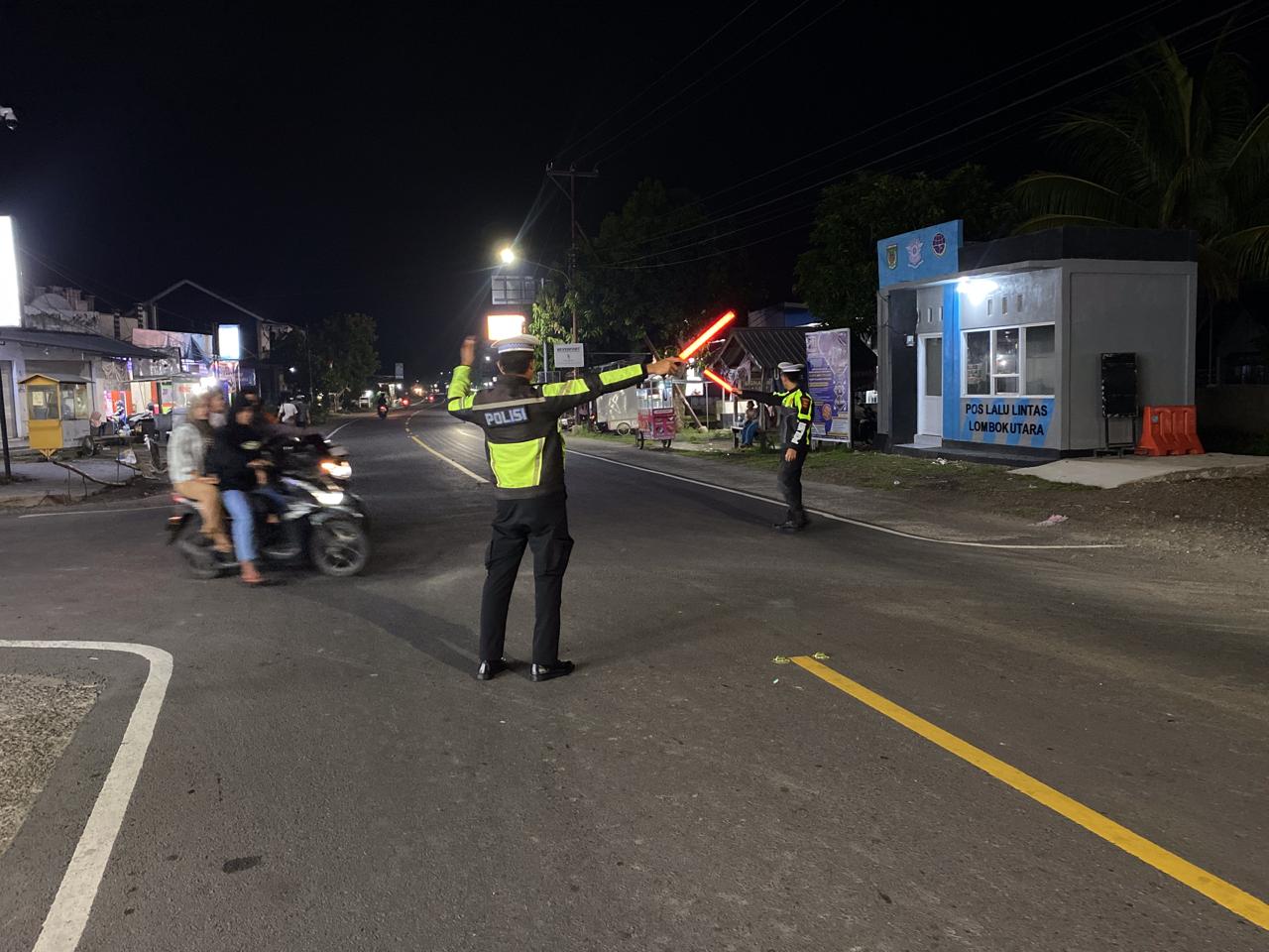 Lombok Utara – Satuan Lalulintas Polres Lombok Utara melaksanakan patroli blue light dan pengaturan lalu lintas serta memberikan pesan keselamatan bagi masyarakat Lombok Utara, (17/2).