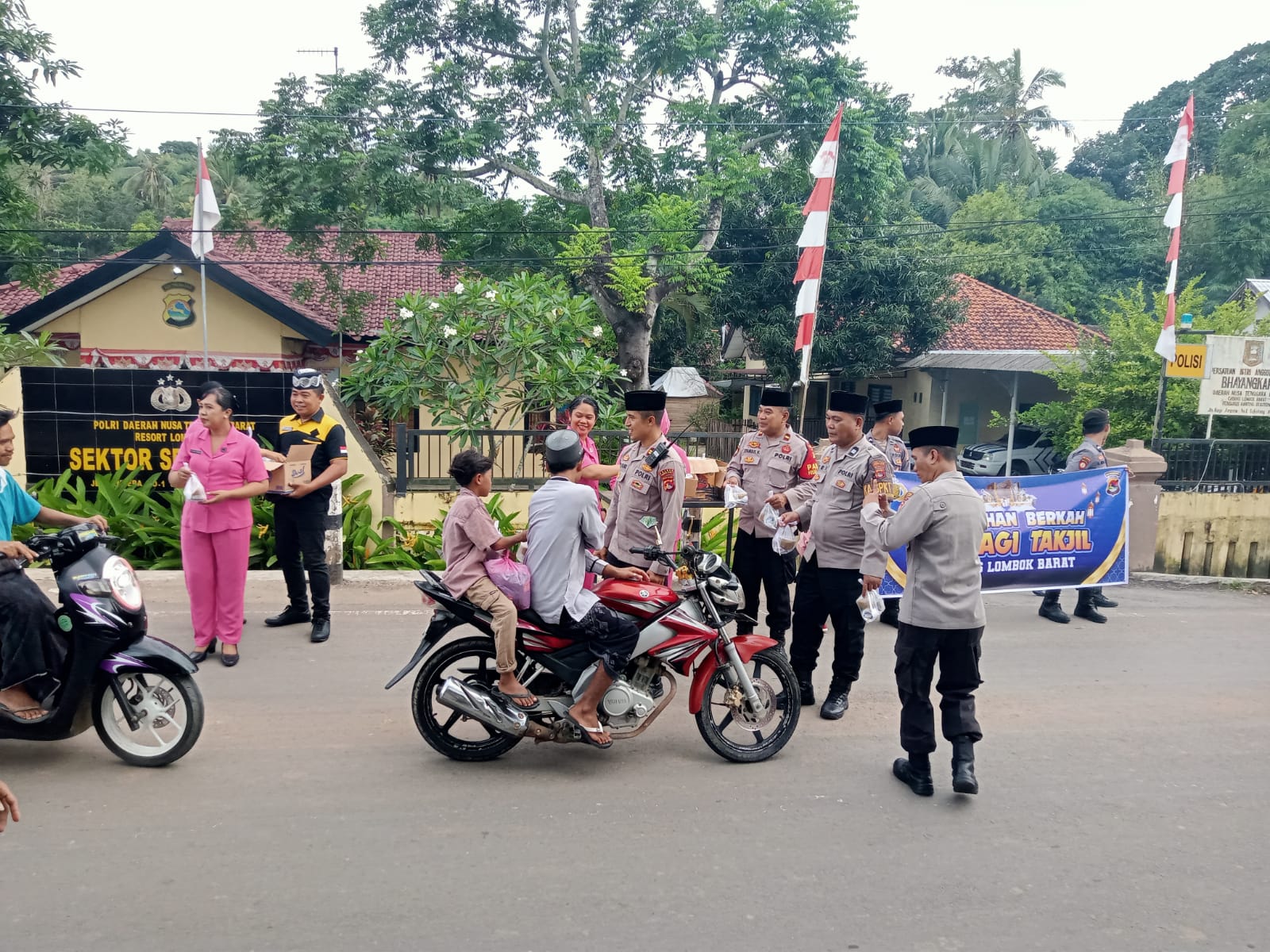 SEKOTONG , LOMBOK BARAT – Bulan Ramadhan yang penuh berkah menjadi momentum bagi Polres Lombok Barat untuk meningkatkan kepedulian terhadap sesama. Sebagai bagian dari program “Ramadhan Berkah Bagi Takjil Polres Lombok Barat,” Polsek Sekotong menggelar kegiatan bagi-bagi takjil kepada masyarakat yang melintas di depan Mako Polsek Sekotong pada Minggu, 09 Maret 2025.