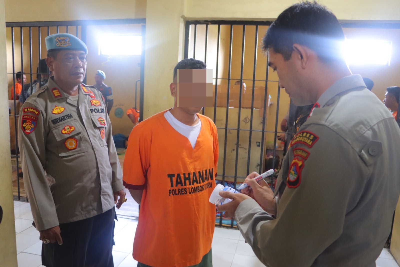 Sebanyak 15 orang tahanan menjalani pemeriksaan urin yang dilakukan oleh Seksi Dokes Polres Lombok Utara bersama dengan Seksi Propam dan Satuan Reserse Narkoba.