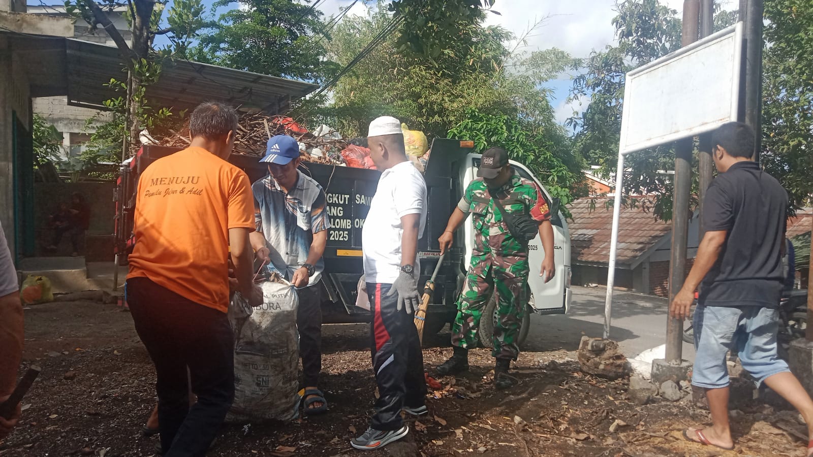 Lombok Barat, NTB – Bintara Pembina Desa (Babinsa) Dopang, Komando Rayon Militer (Koramil) 1606-07/Gunungsari, bersama aparat Desa dan masyarakat setempat melaksanakan kegiatan pembersihan lingkungan pasca hujan lebat yang mengguyur sejumlah wilayah termasuk di Dusun Ranjok Utara, Desa Dopang, Kecamatan Gunungsari, Lombok Barat, Sabtu (13/9/2025).
