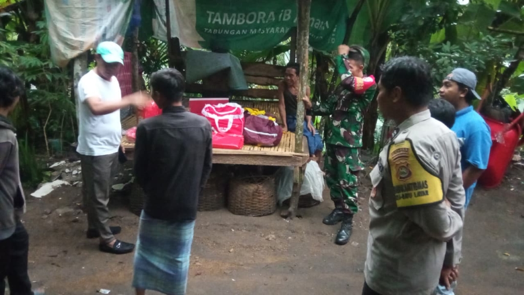 Bintara Pembina Desa (Babinsa) Batulayar Komando Rayon Militer (Koramil) 1606-07/Gunungsari, Sertu Deddy Heriawan, melaksanakan monitoring penyerahan bantuan kepada Asikin (25), warga Dusun Orong yang rumahnya terdampak longsor akibat hujan lebat pada Rabu dini hari.