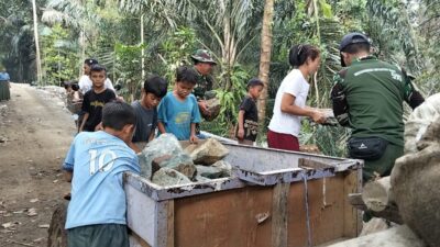 semangat gotong royong antara TNI dan masyarakat benar-benar terasa nyata Pembangunan jalan ini bukan sekadar membuka akses